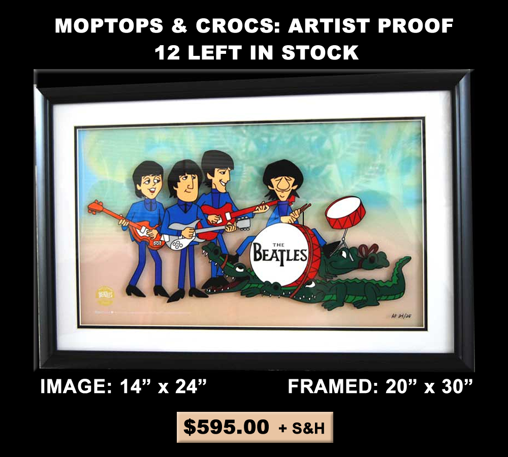 These Hand-Painted limited editions cels recreate classic scenes from the cartoons series, using the same materials and techniques as are used in making the originals. Some limited editions are exact reproductions of scenes from the films they represent, while others are a combination of single film frames created as one composite. The animator's drawing is transferred onto acetate cels, then each color is meticulously hand-painted by an artist. Each piece is hand-numbered in small edition sizes of between 5 and 100. All of our Hand-Painted cels are available for signature by an original Beatles Saturday Morning cartoon series animator.